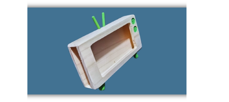 Soporte celualr madera color verde. Mantiene a tu pequeño/a a distancia de la manipulacio de los celulares